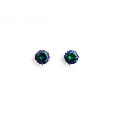 RMZ Mystic Green Aurora Stud Earrings – Iridescent Gemstone Sparkle in Silver Setting