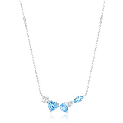 Bella Silver Sterling Silver Multi-Shaped CZ Bar Necklace - Aqua - Green - 16+2 Inch