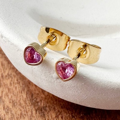 Pink Crystal Heart Stud Earrings in Gold, Rose Gold, Silver - Honeycat