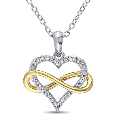 EVERLY JEWELRY | Sterling Silver with Black Rhodium 1/10 CT TW Diamond Heart Infinity Pendant with Chain