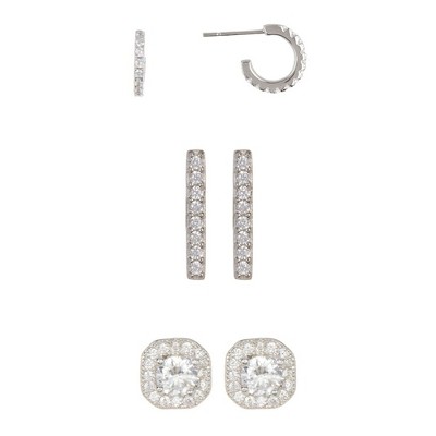 Adornia Silver 3-Piece Huggie and Stud Earring Set