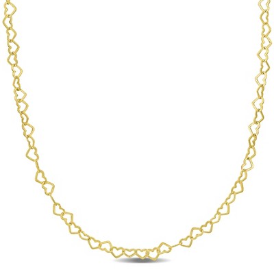 EVERLY JEWELRY | Yellow Plated Sterling Silver 3mm Heart Link Necklace, 18-inch