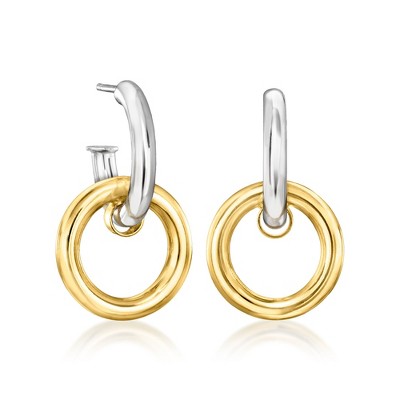 Ross-Simons Italian Sterling Silver Hoop Earrings With Removable 18kt Gold Over Sterling Circle Drops