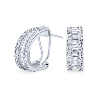 Bling Jewelry Holiday Baguette CZ Half Hoop Shrimp Style Earrings Omega Back Sterling Silver