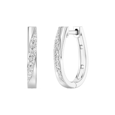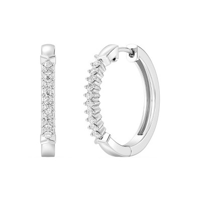 Black Bow Jewelry 1/10 Cttw Diamond Huggie Round Hoop Earrings in Sterling Silver - 10mm