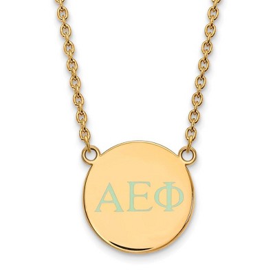 Black Bow Jewelry 14k Yellow Gold Plated Sterling Silver Alpha Epsilon Phi Greek Life Enameled Aqua Letters Small Disc Necklace 18 Inch
