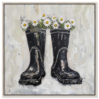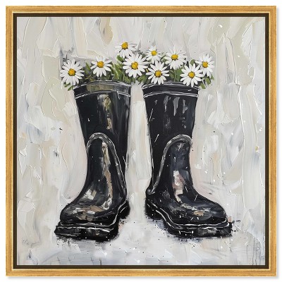 Art Remedy Rainboots and Daisies Chic Farmhouse Wall Art Framed