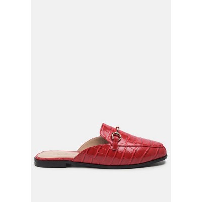 Begonia Buckled Faux Leather Croc Mules
