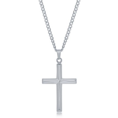 Metallo Mens Stainless Steel Polished Cross Necklace - Silver - 24 Inch