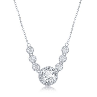 Bella Silver Sterling Silver Round CZ Necklace - Silver - 16+2 Inch