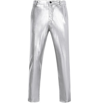 Coolmee Mens Metallic Shiny Pants Wet Look Party Dance Straight Leg Trousers Festival Rave Cosplay Pants