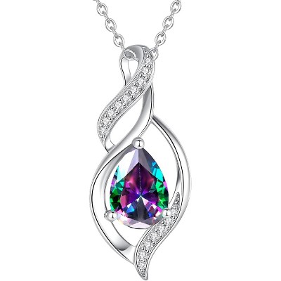 Bella Silver Sterling Silver Abalone Waves Design Teardrop 18" Pendant Necklace - Multi