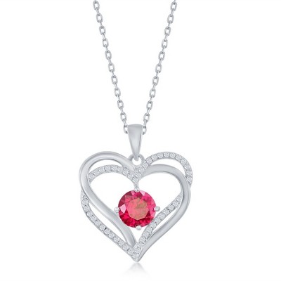 Bella Silver Sterling Silver, CZ Cross & Heart 18" Pendant Necklace - Ruby CZ - Red