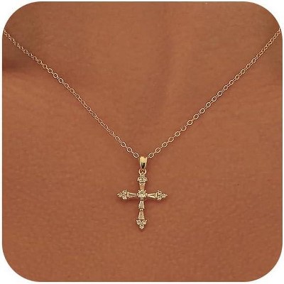 SmallRig 925 Sterling Silver Crown Cross Necklace for Women, Cubic Zirconia Pendant Adjustable Choker Religious Jewelry Gift