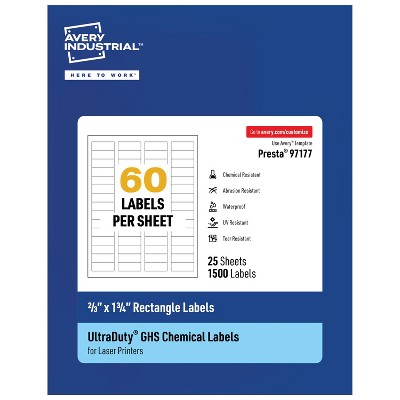 Avery UltraDuty GHS Labels, Waterproof, 2/3" x 1-3/4" Inch Rectangle Printable Labels, for Use with Laser Printers