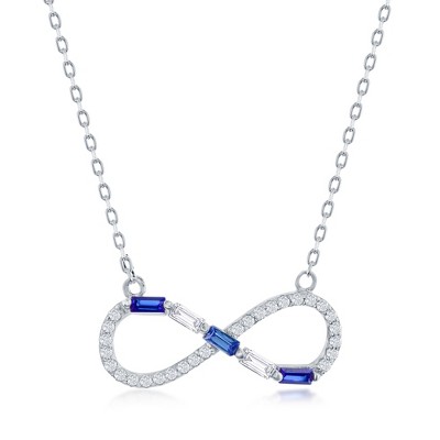 Bella Silver Sterling Silver Round & Baguette CZ Infinity Necklace - Sapphire CZ - Blue - 16+2 Inch