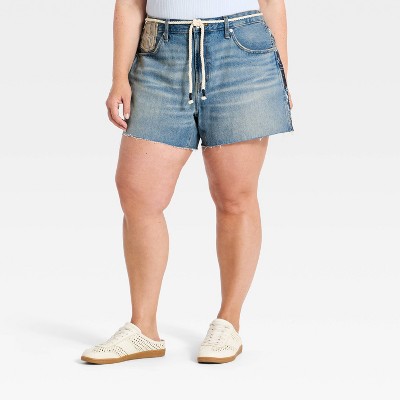 Women's Mid-Rise Patchwork Barrel Shorts - Universal Thread™ Medium Wash