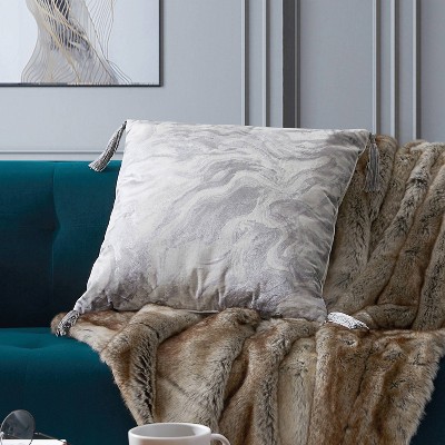 18"x18" Boucle Foil Marble with Tassels Square Throw Pillow Ivory/Silver - VCNY Home: Decorative Accent, Microfiber