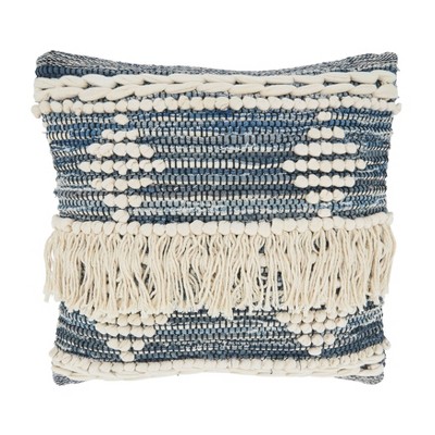 18"x18" Poly-Filled Chindi Design Square Throw Pillow with Fringe Blue - Saro Lifestyle: Cotton Cover, Indoor Decor, Zippered