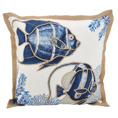 20"x20" Oversize Fresh Fish Down Filled Square Throw Pillow Blue - Saro Lifestyle