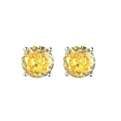 Bella Silver Sterling Silver 6MM Topaz "November" Swarovski Element Earrings - Yellow