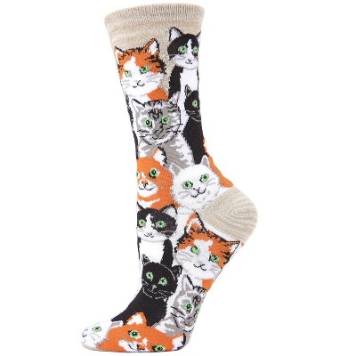 Memoi Multi Cat Club Bamboo Blend Crew Socks