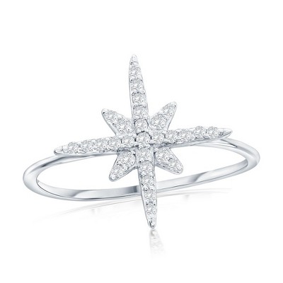 Bella Silver Sterling Silver, Star with CZ Sides Bar Necklace - Silver - 16+2 Inch