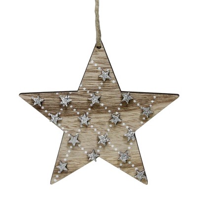 Northlight Wooden Star Christmas Ornament with Star Accents - 4.5" - Brown and Silver