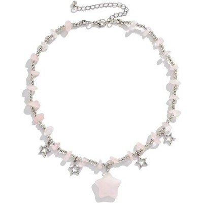 Y2K Crystal Star Choker | Healing Stone Pendant Silver Chain Necklace