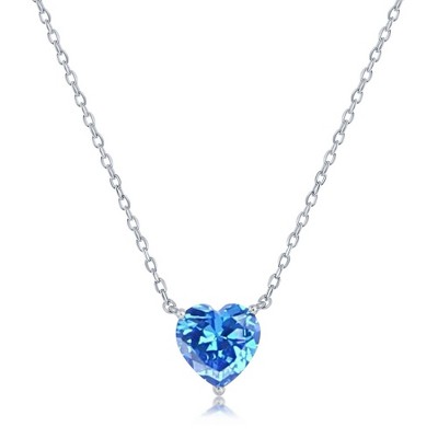 Bella Silver Sterling Silver 8MM Blue Topaz "December" Heart Perciosa Crystal Necklace - Blue - 16+2 Inch