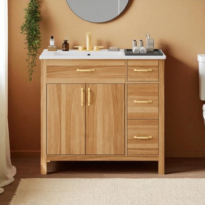 SEVOBAL Bathroom Vanities 30 Inch Convertible Vanity with Soft Close Storage for Bathroom, Brown, 30"*18.3"*35.06"