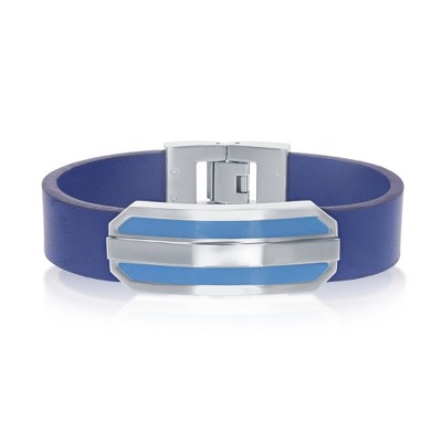 Steeltime Men's black braided leather bracelet with stainless and multi colored enamel magnetic clasp