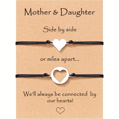 Mother Daughter Matching Heart Bracelet Set with Inspirational Quote, Adjustable Nylon Cord Bracelets