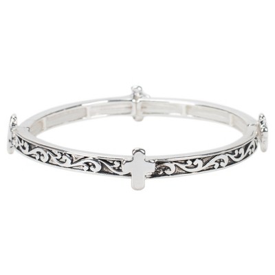 Dicksons Eternal Cross Engraved Women's One Size Silver Plated Stainless Steel Adjustable Beaded Bracelet in Presentation Box