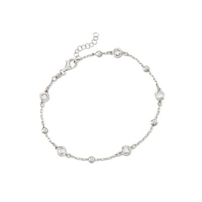 Ross-Simons Italian 1.15 ct. t.w. Bezel-Set CZ Station Anklet in Sterling Silver