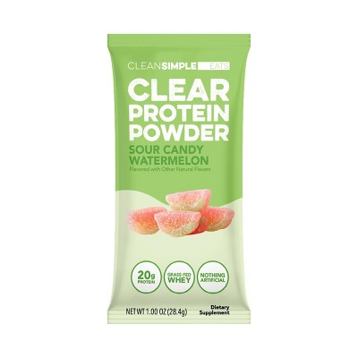 Clean Simple Eats Clear Protein Powder Sour Candy Watermelon - 8.0oz/8ct: Whey Protein Isolate, 20g Protein Per Serving