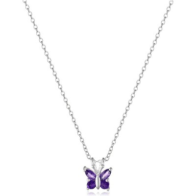 Bella Silver Sterling Silver, Hexagon CZ Curved Bar Necklace - Silver - 16+2 Inch