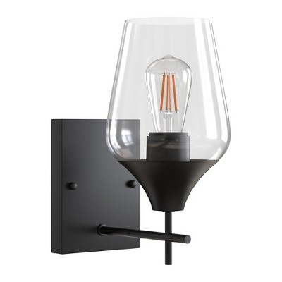 DORESshop 1-Light Matte Black Bathroom Light Fixture Modern Industrial Wall Sconce Vanity Light with Wine Glass Shade (2-Pack)