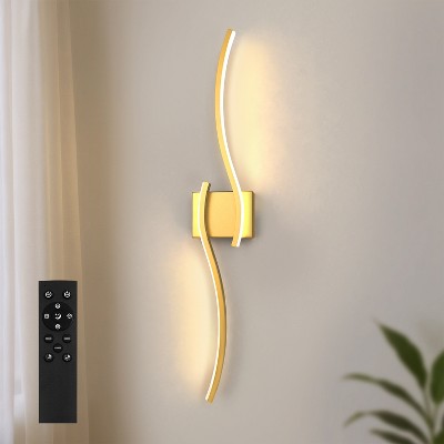 DORESshop28 in. 2-Light Gold Wireless Dimmable Wall Sconces, Wall Light for Cozy Bedroom Living Room, Set of 2