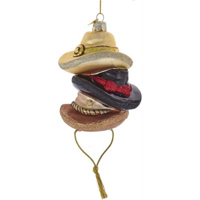 Kurt Adler Noble Gems Glass Ornament for Christmas Tree, Stacked Western Hats