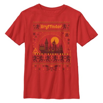 Boy's Harry Potter Gryffindor Ugly Christmas Sweater Print T-Shirt