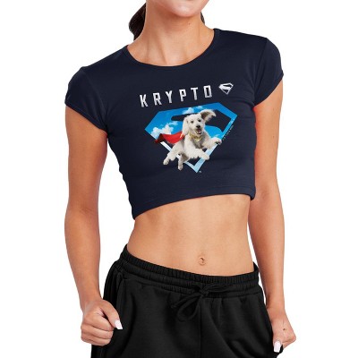 Women's Superman 2025 Krypto Diamond Cap Sleeve Baby Rib Crop Top