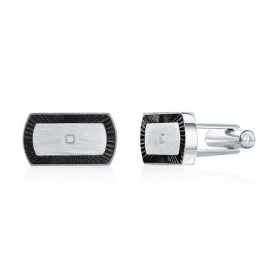 Metallo Mens Stainless Steel, D-C Outline, Single CZ Cuff Links - Black & Silver - Silver