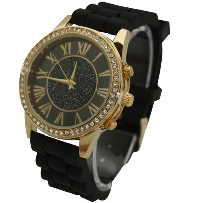 OLIVIA PRATT FLOATING COLORFUL STONES SILICONE STRAP WATCH