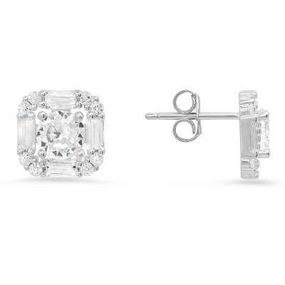 Princess 6mm Stud Earrings White Gold Plated Cz Womens Ginger Lyne Collection