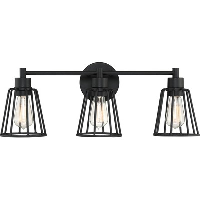 Progress Lighting Beckner 2-Light Vanity Light, Matte Black, Industrial-Style Shades, Damp Rated