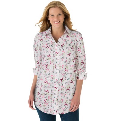 Woman Within Button-Front Mixed Print Tunic