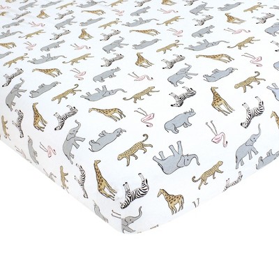 Hudson Baby Infant Girl Cotton Fitted Crib Sheet, Modern Pink Safari, One Size