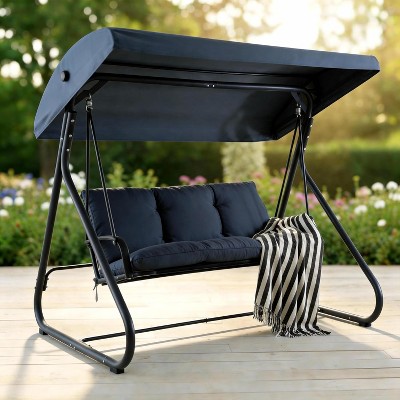 Okak 3-Seater Patio Swing Chair with Adjustable Canopy,Swing Sets with Shade,Heavy-Duty Outdoor Porch Swing for Garden,Poolside,Backyard