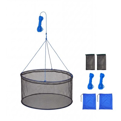 VEVOR Double Ring Crab Trap, 24 inch Top, 20 inch Bottom, Two Rings Crab Kit, Foldable Fishing Net with Gauge,60 ft Rope,Wire Grid Bottom,2 Set,Black